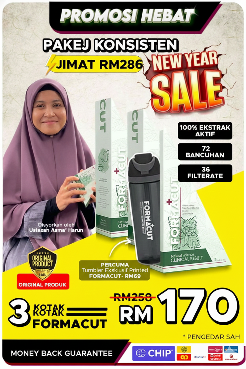 “Terbukti secara saintifik, Formacut dengan daun Mulberry bantu kawal gula darah, percepat metabolisme lemak, dan sokong penurunan berat badan secara semula jadi, selamat, dan efektif.” - Dr. Nurshahirah